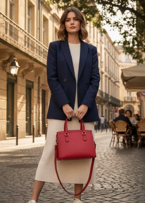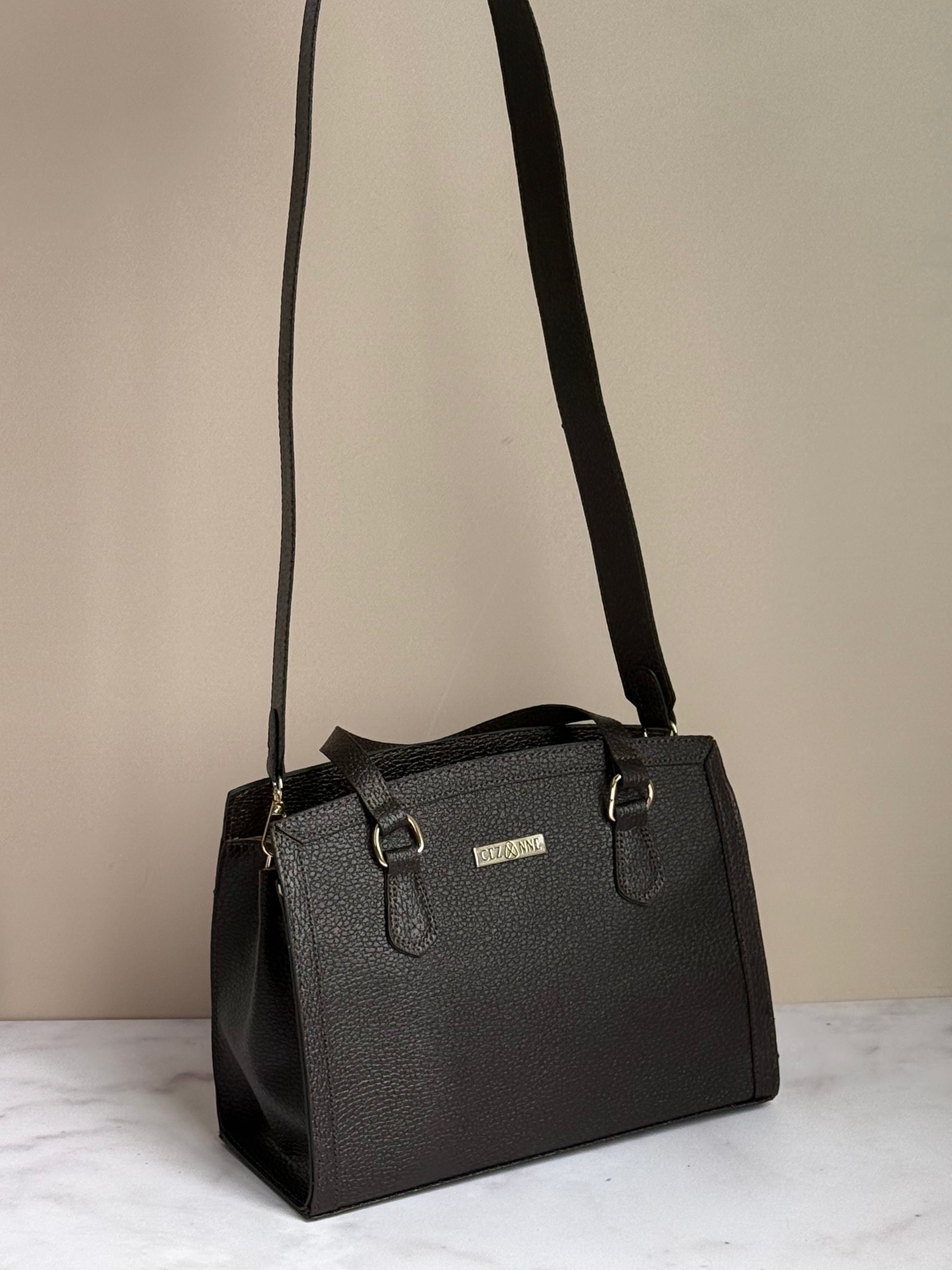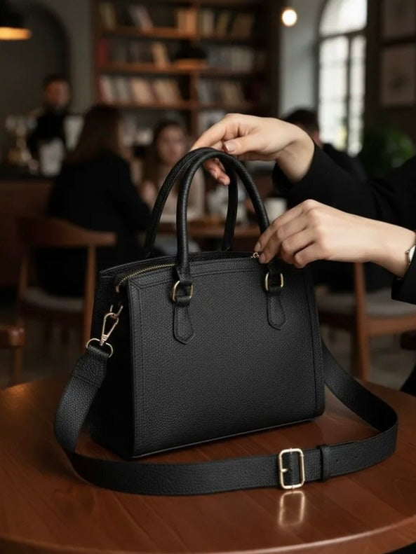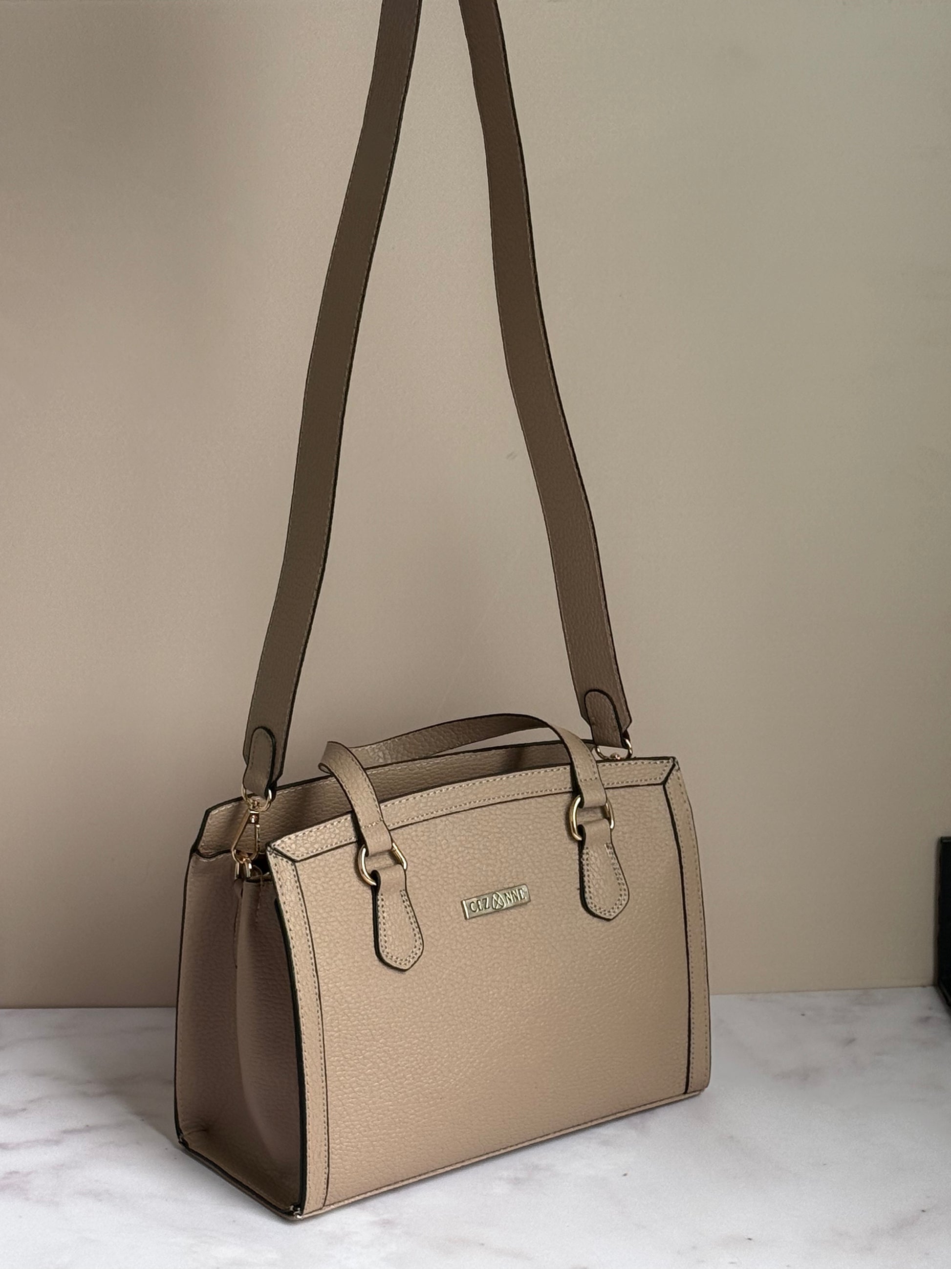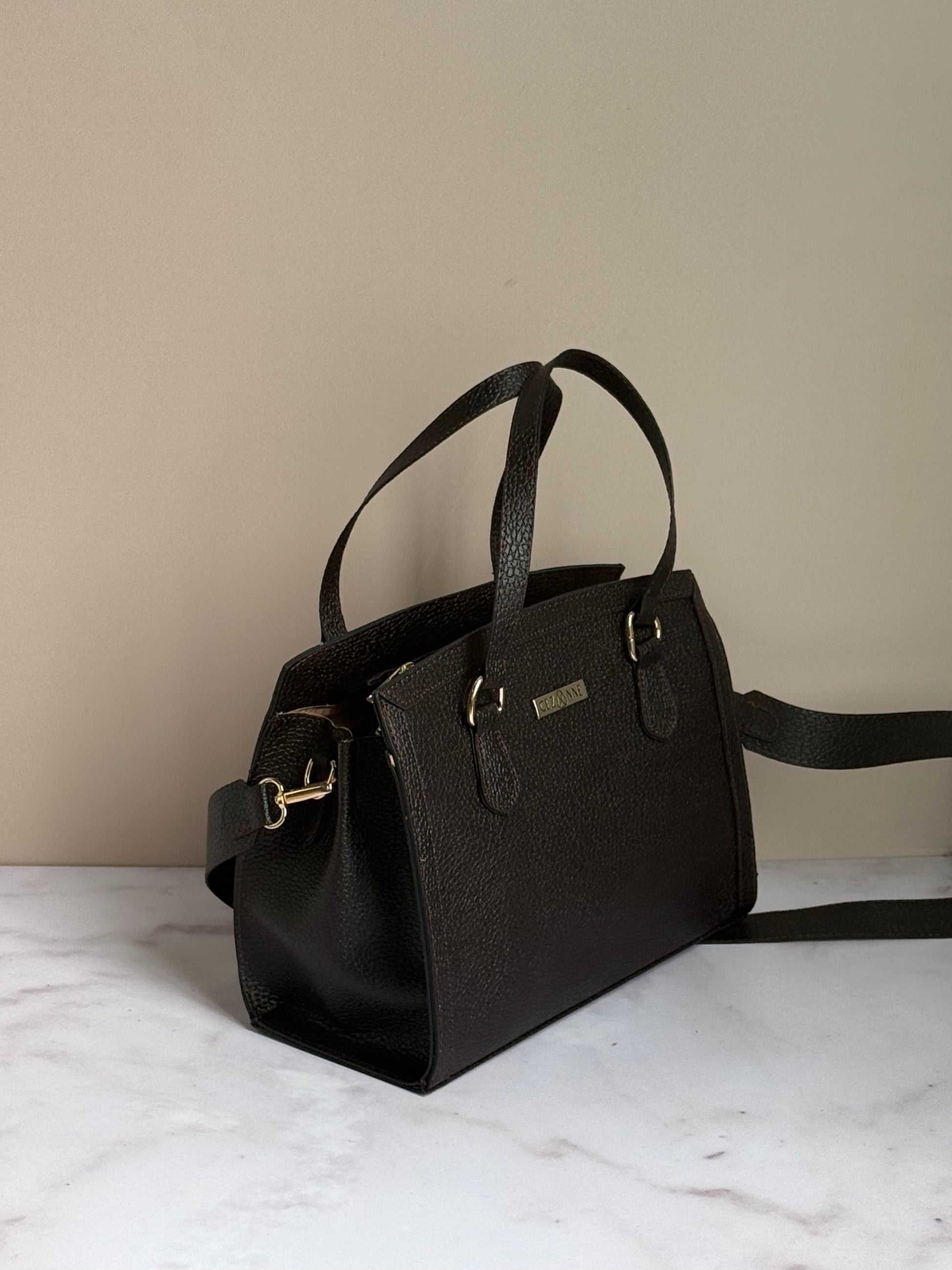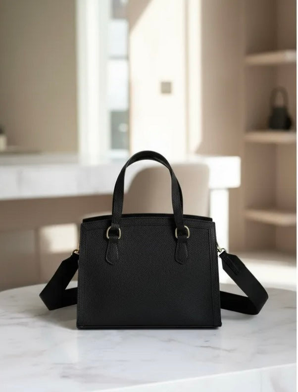 Su tamaño mediano ofrece la practicidad perfecta para llevar lo esencial, ya sea como bolso de mano o gracias a su asa larga, cómoda para usar al hombro.