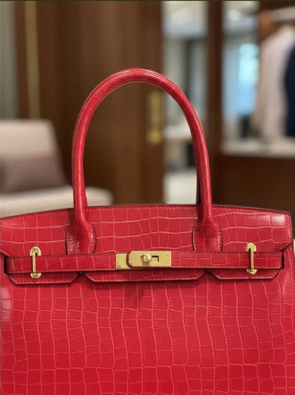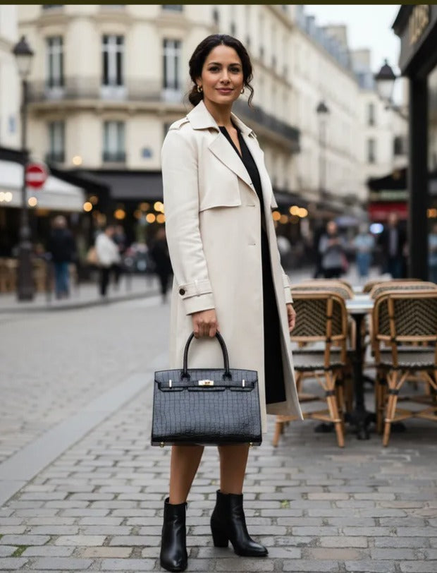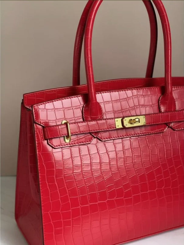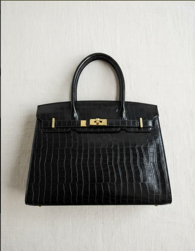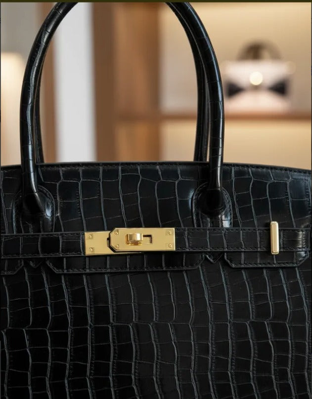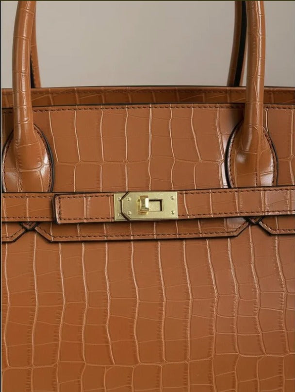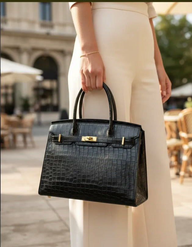 Con un diseño atemporal y elegante, el bolso Jane Birkina combina piel de cocodrilo sintética con piel vegana premium para ofrecer un estilo sofisticado y responsable. Sus dimensiones amplias (35 cm de largo, 18 cm de ancho y 22 cm de alto) lo hacen ideal para la mujer ejecutiva que necesita espacio sin sacrificar elegancia. La textura, ya sea de cocodrilo o lisa, aporta un toque de lujo discreto que complementa cualquier outfit de oficina. Perfecto para acompañarte en tu día a día con funcionalidad y distinción.