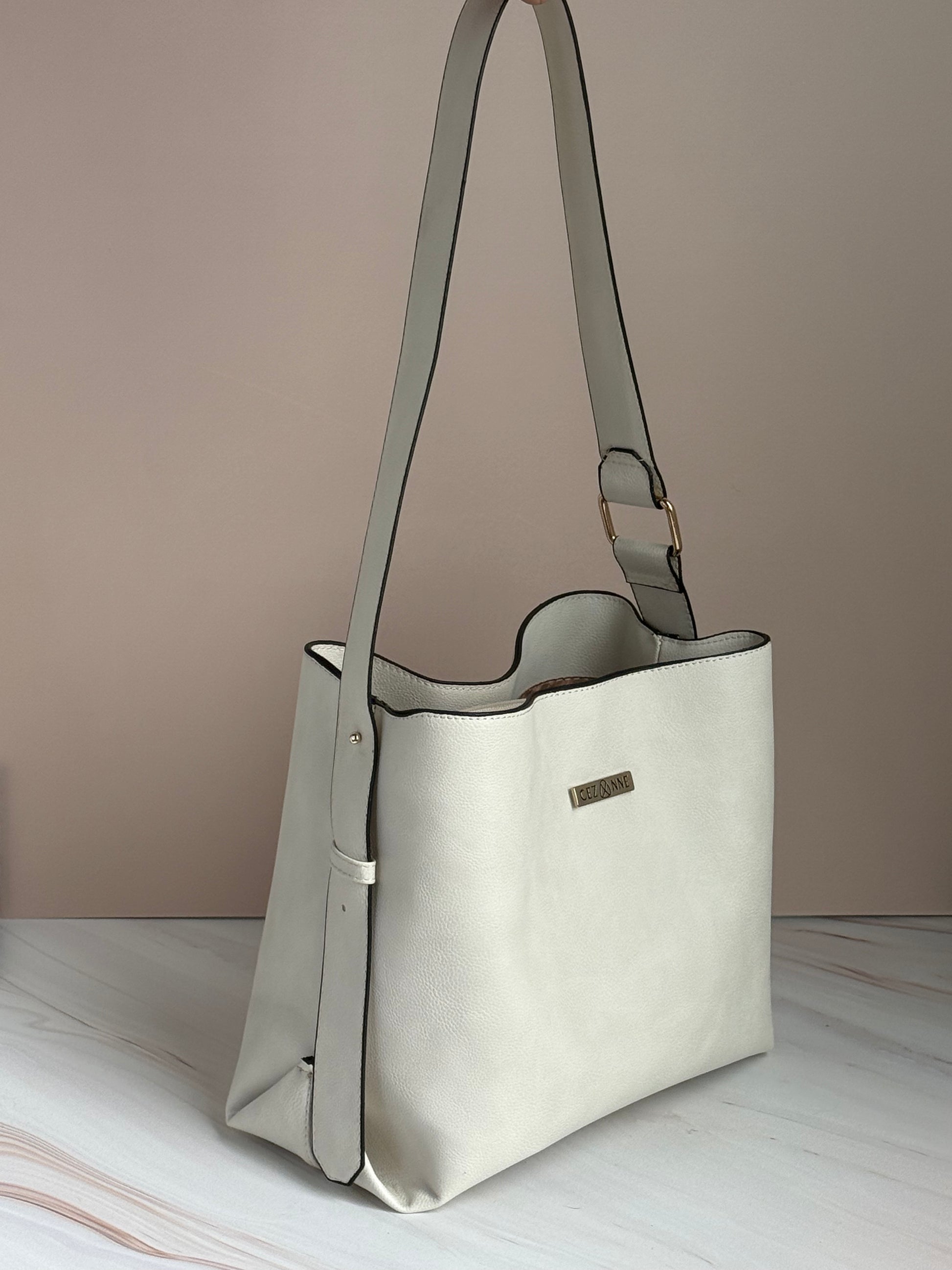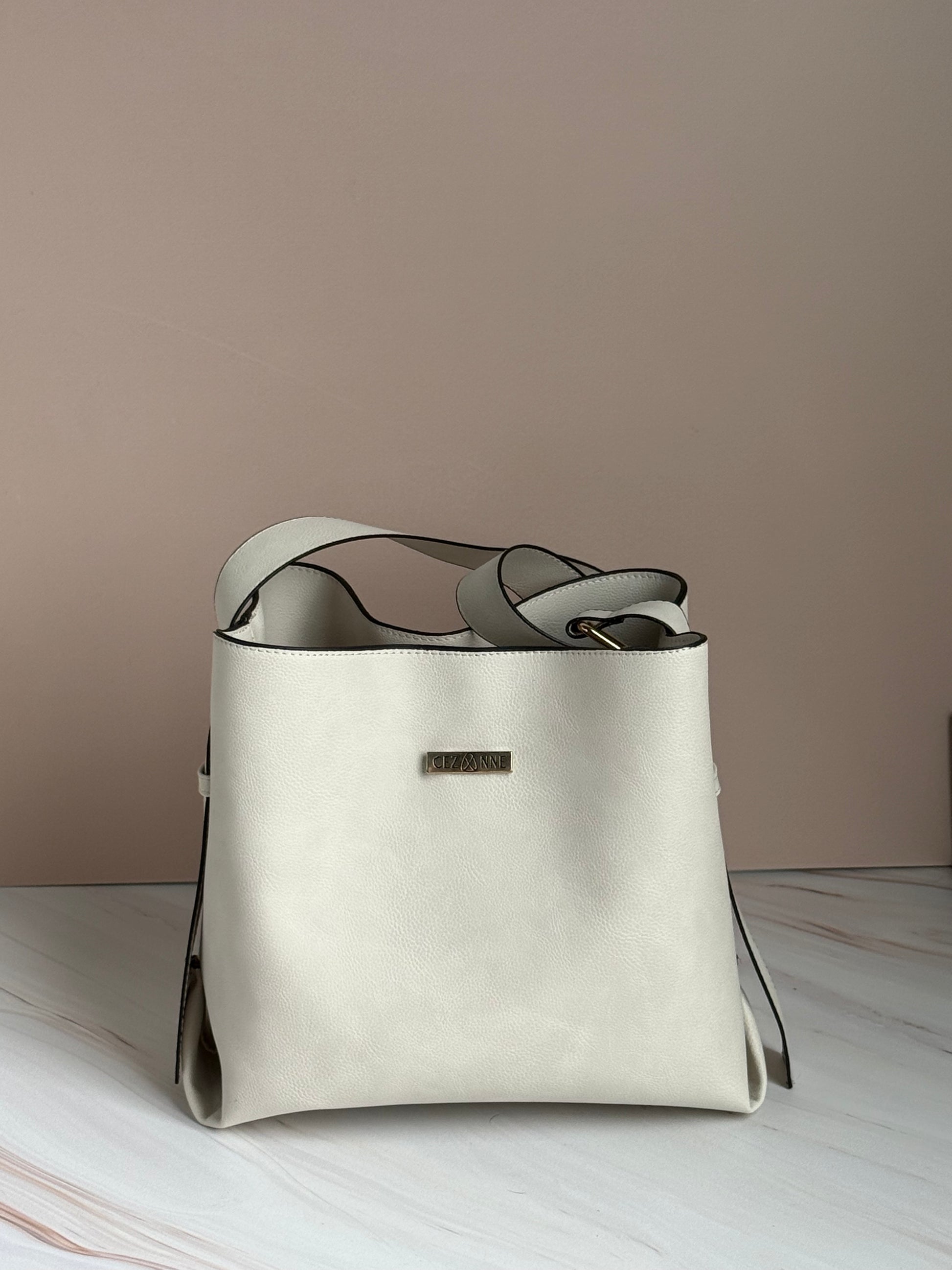 Su diseño tipo bucket cuenta con tres compartimentos que te permiten organizar tus objetos con facilidad. Posee asas anchas que ofrecen comodidad tanto para llevarla al hombro como cruzada, adaptándose a tu estilo y necesidades diarias.