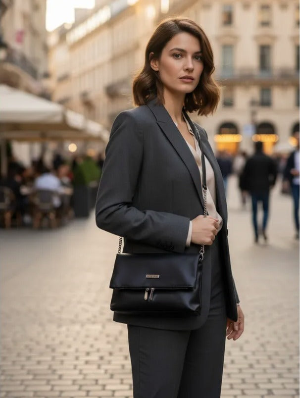Con tres compartimentos interiores espaciosos, ofrece organización ideal para llevar lo esencial y un poco más, combinando estilo y practicidad en cada ocasión.
