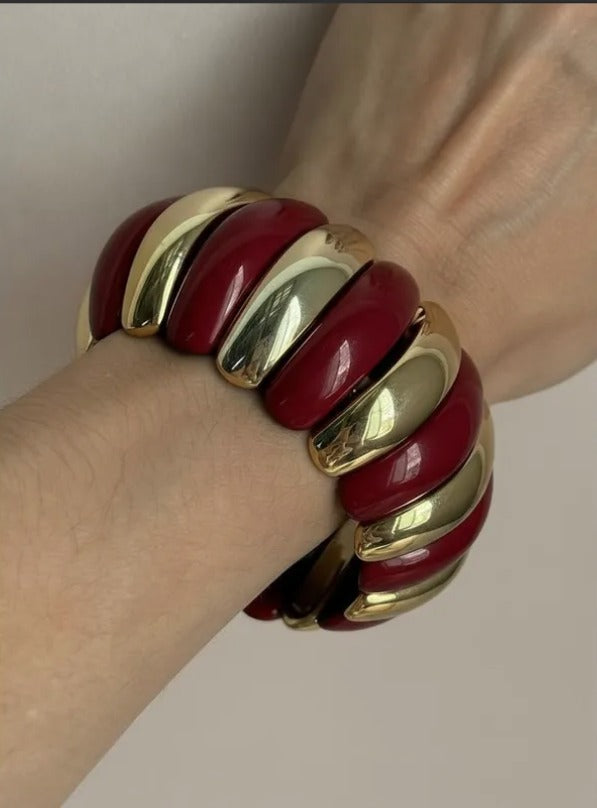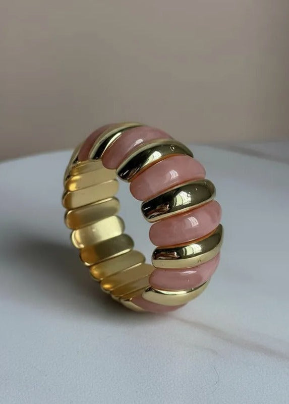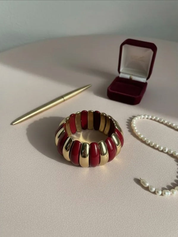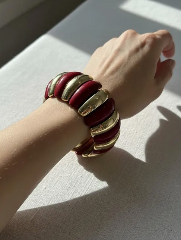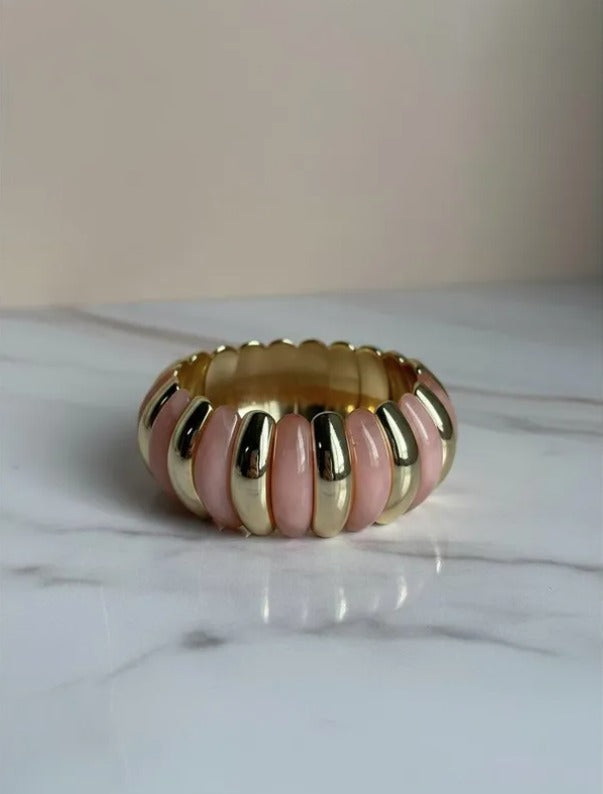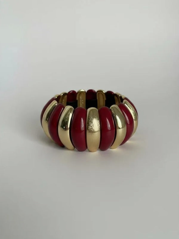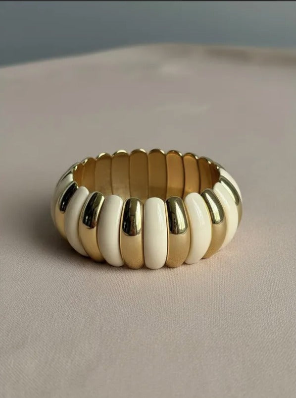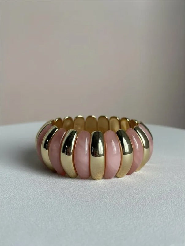 La pulsera Vera combina elegancia y modernidad con sus gajos de acrílico y delicados detalles dorados.