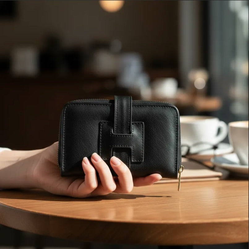 Cartera compacta Farah diseñada para la mujer moderna que valora funcionalidad y estilo. Cuenta con compartimentos especializados para organizar monedas, billetes y tarjetas de forma eficiente.