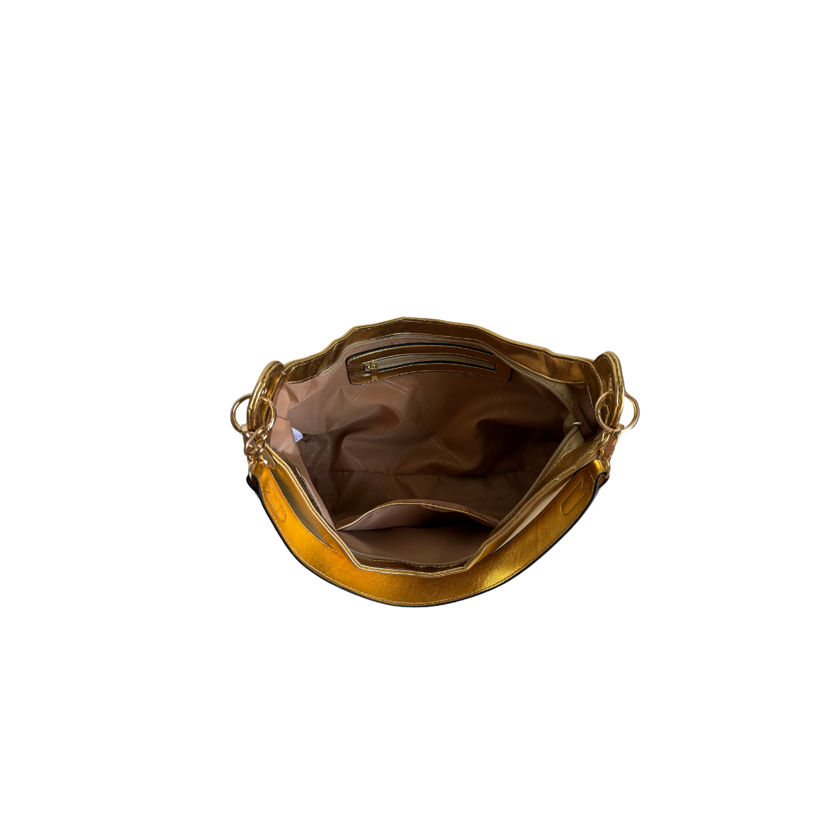 Su diseño tipo hobo ofrece un amplio espacio para llevar todo lo que necesitas con comodidad en el hombro.