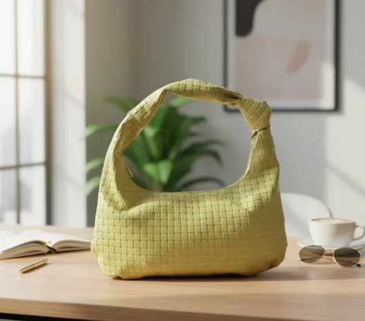 Su textura tejida aporta un toque sofisticado, mientras que su tamaño compacto (15 cm de alto por 30 cm de largo) garantiza practicidad sin sacrificar elegancia.
