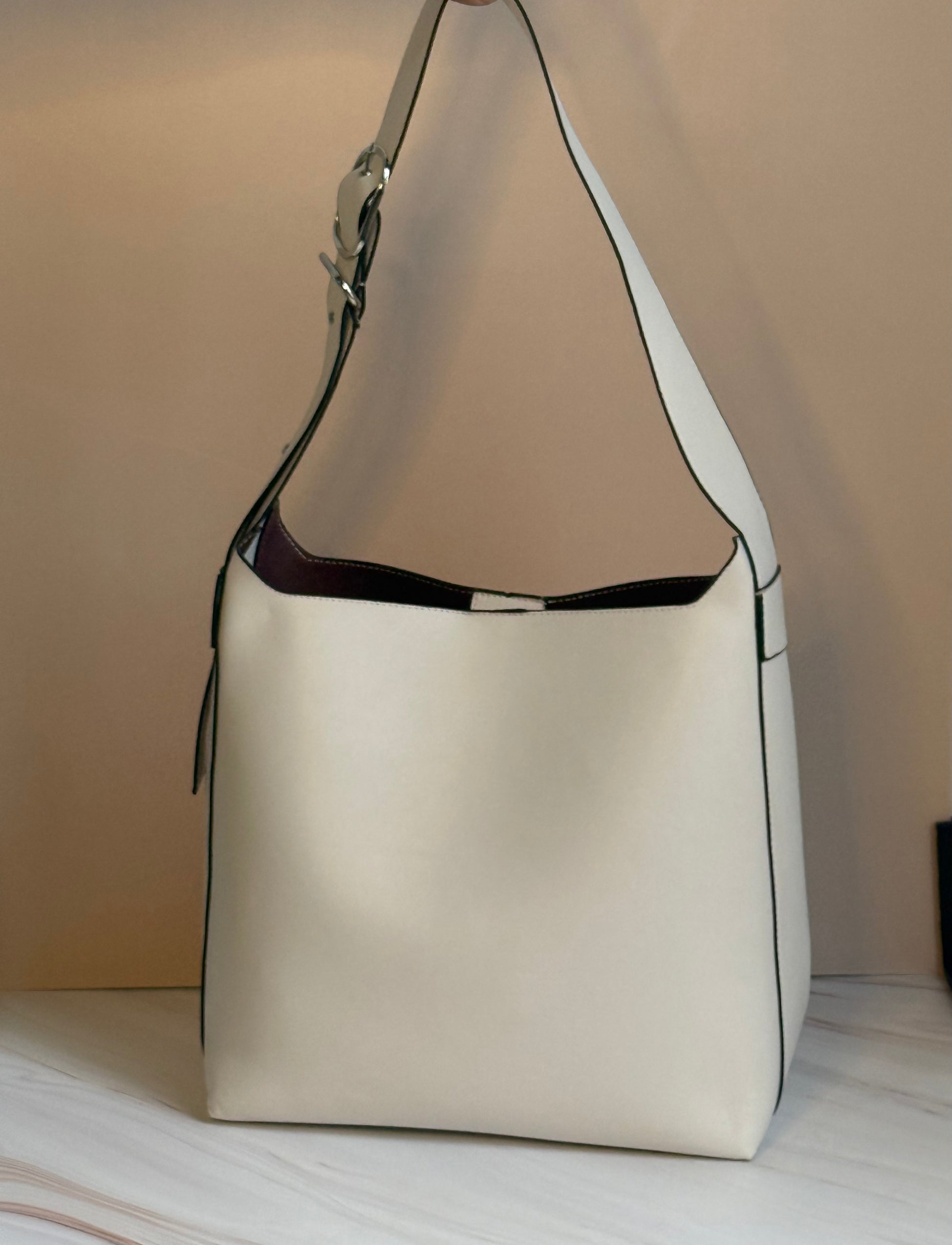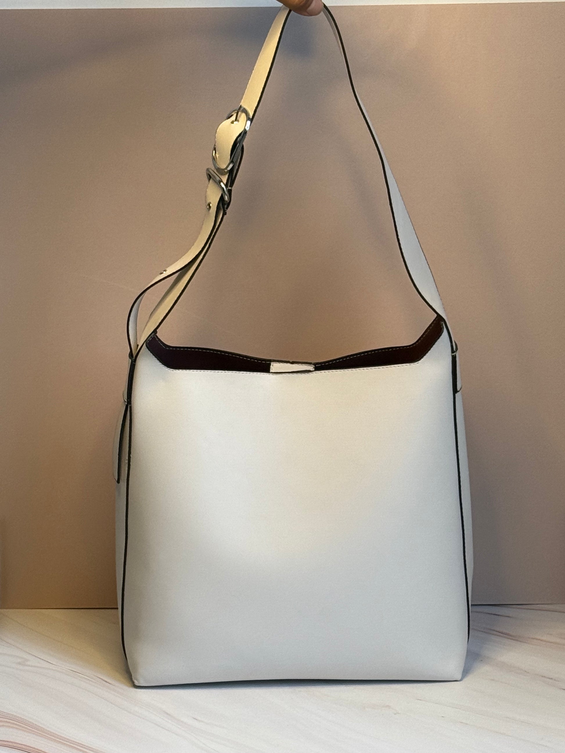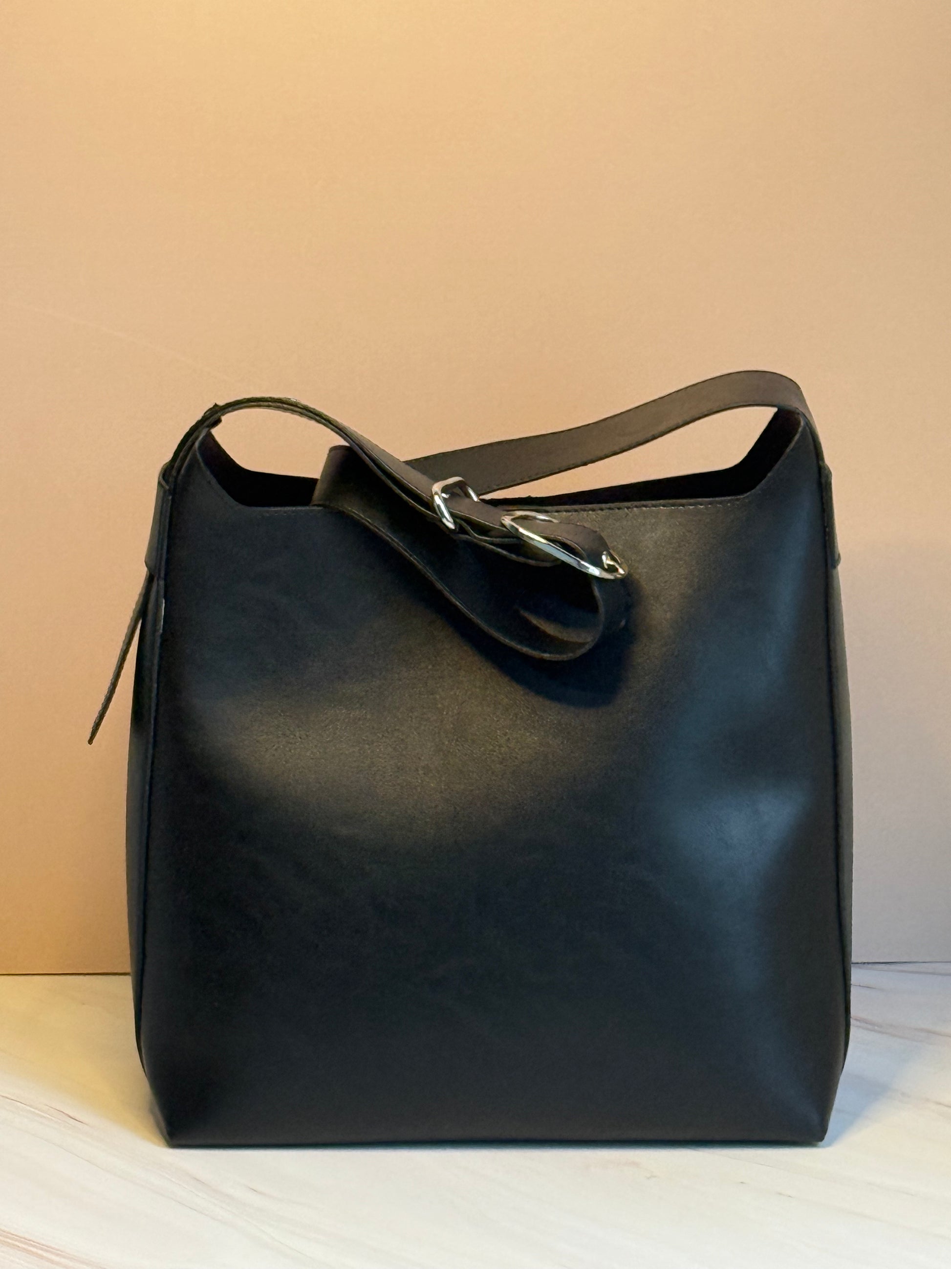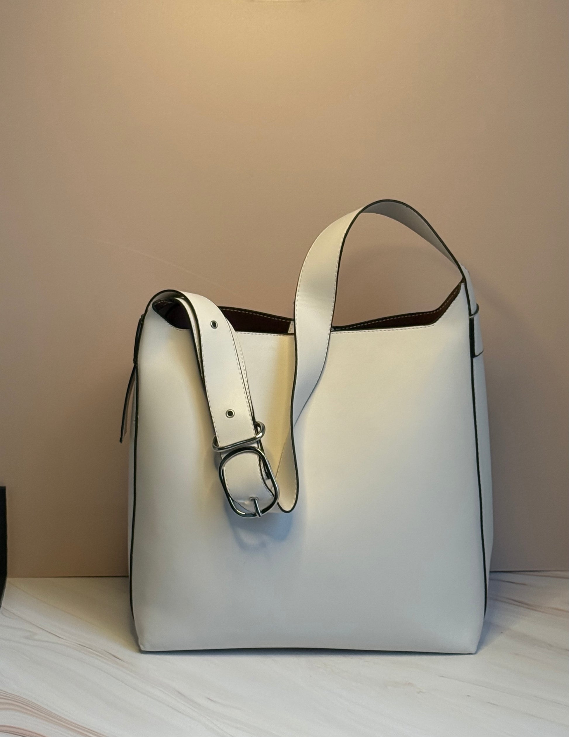 Esta bolsa tipo bucket combina estilo y funcionalidad con su amplia capacidad y asa ancha ajustable que garantiza comodidad durante todo el día.