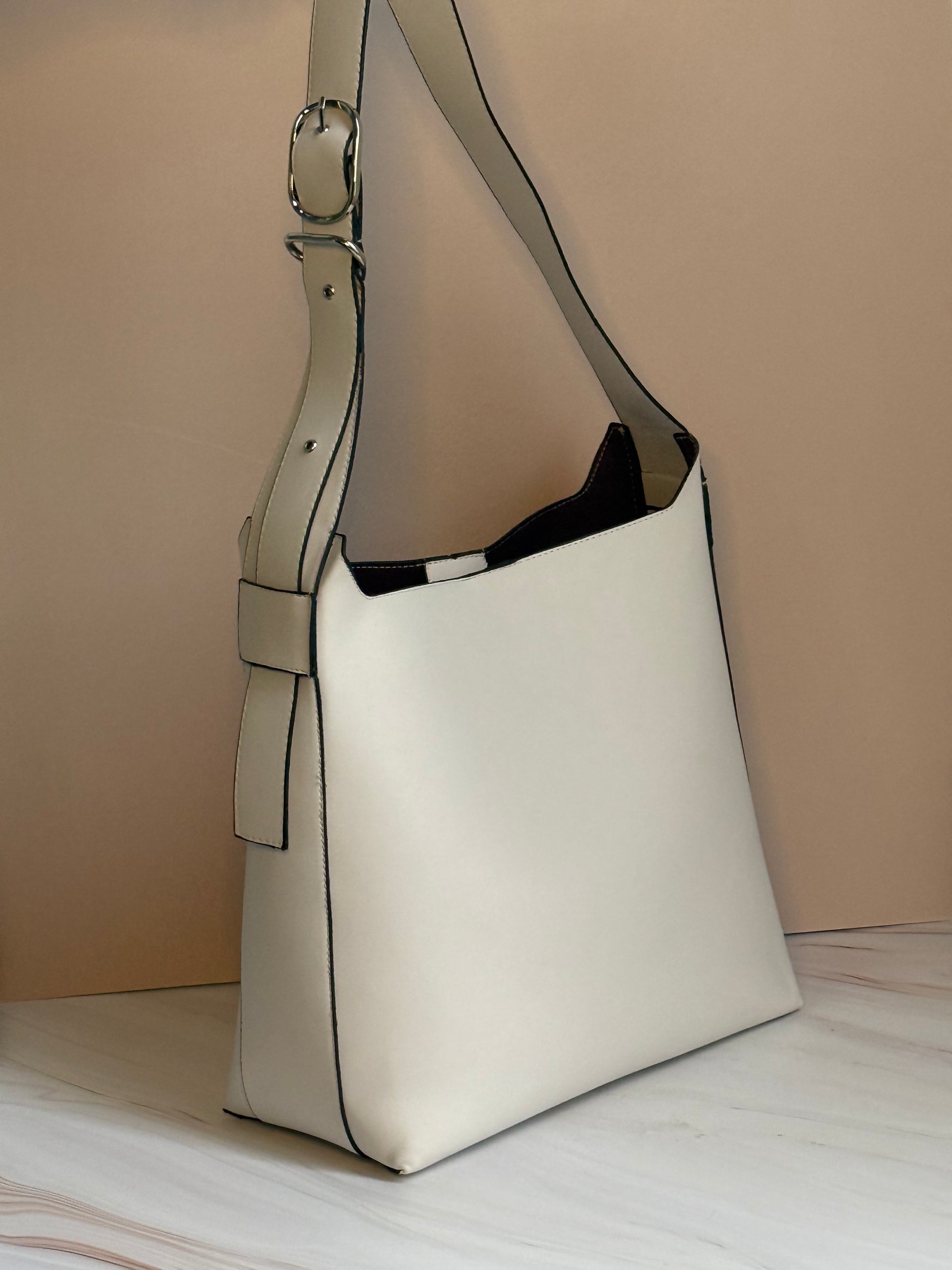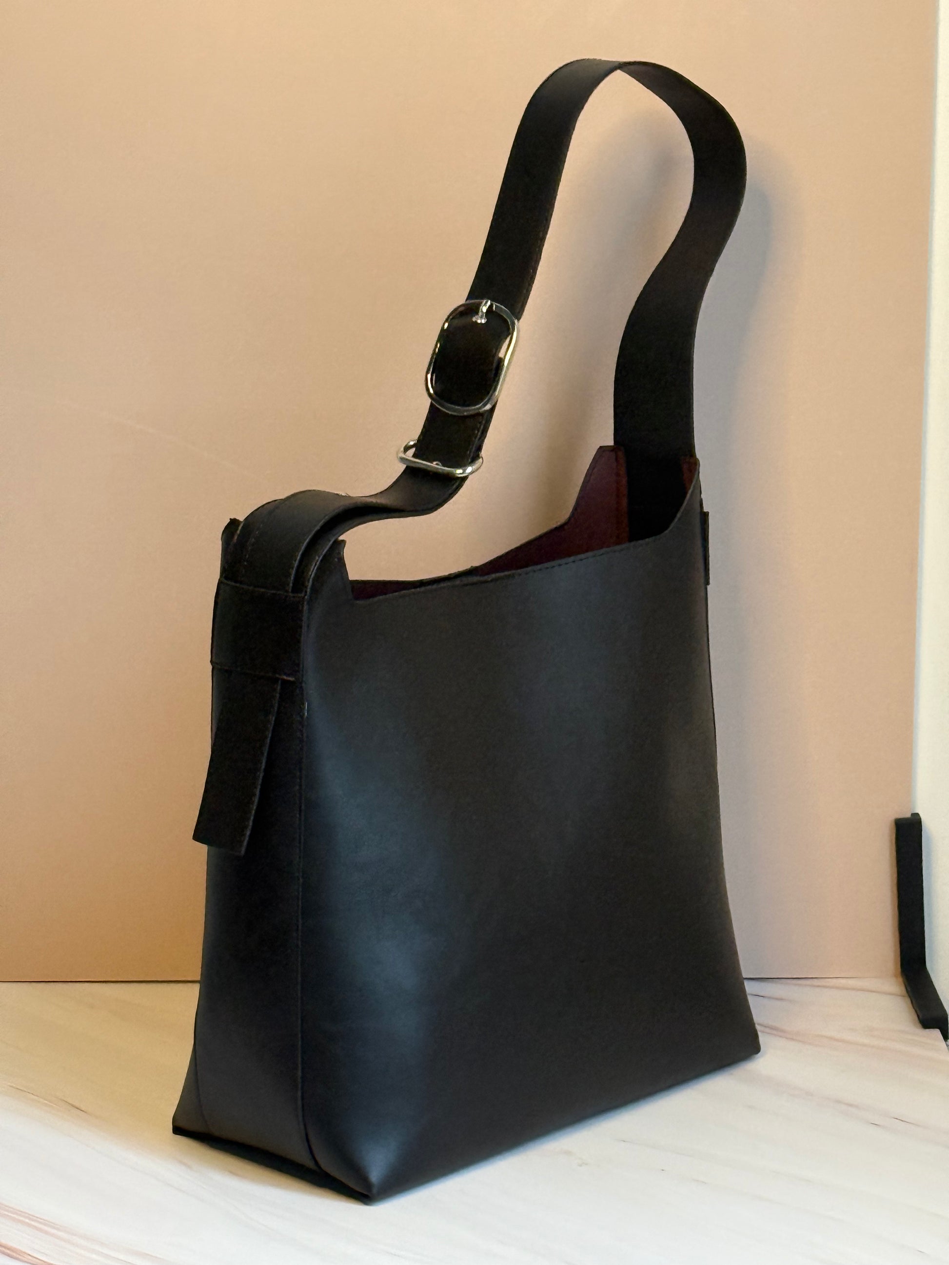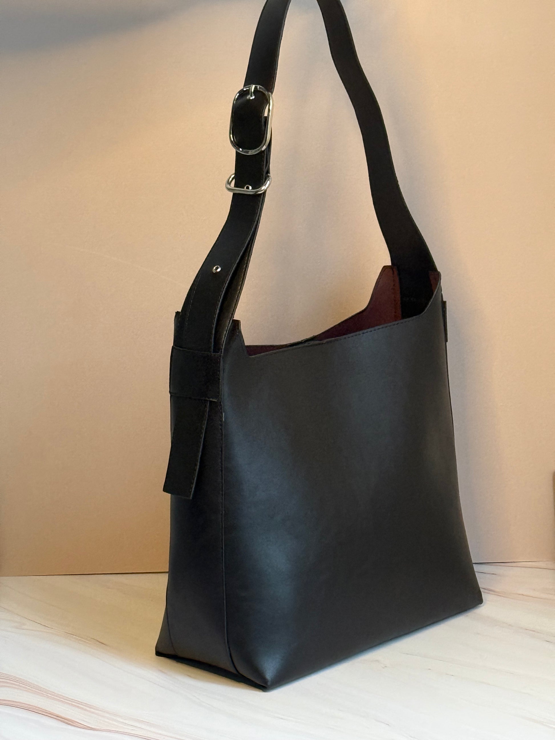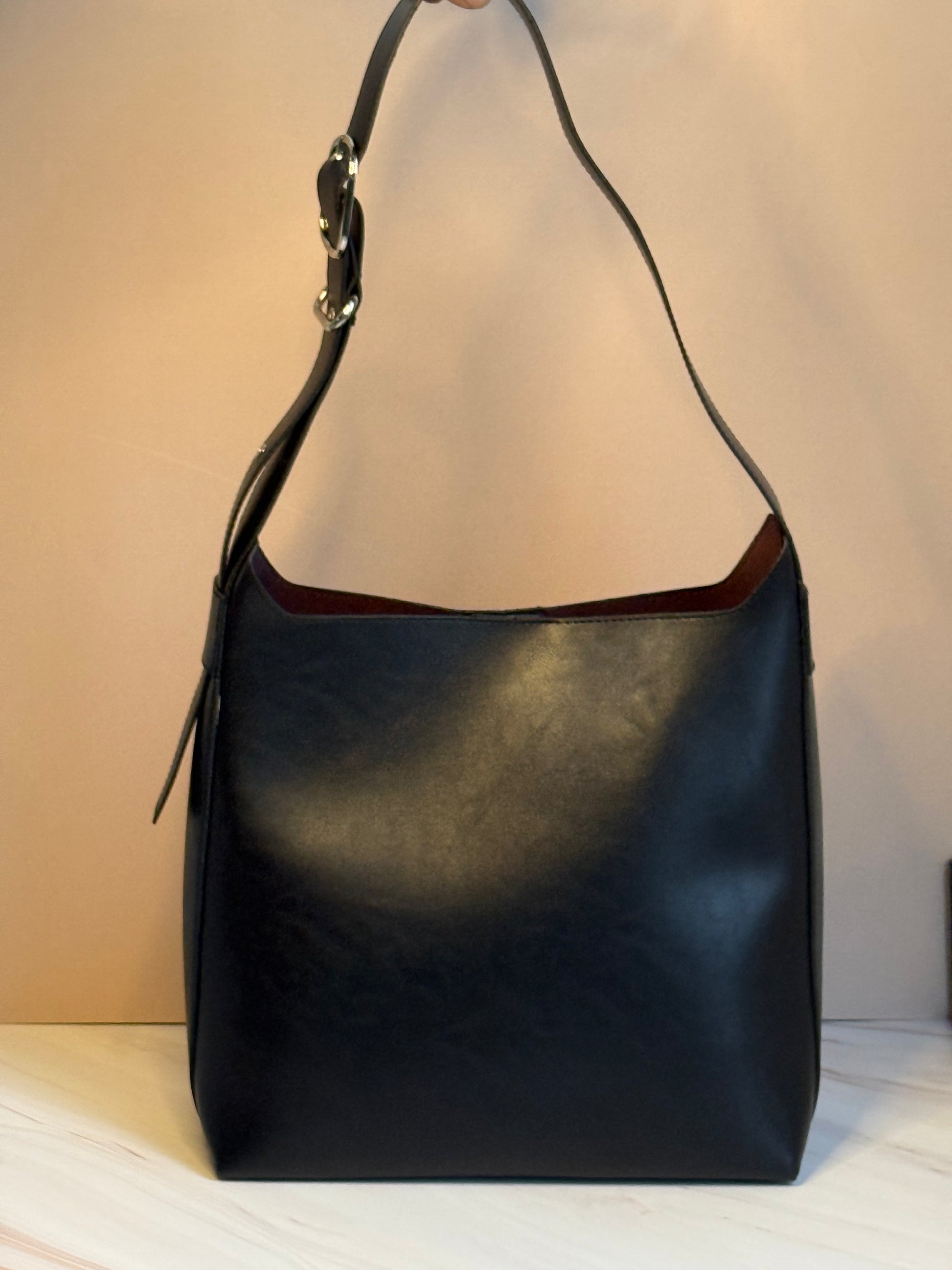 Esta bolsa tipo bucket combina estilo y funcionalidad con su amplia capacidad y asa ancha ajustable que garantiza comodidad durante todo el día.
