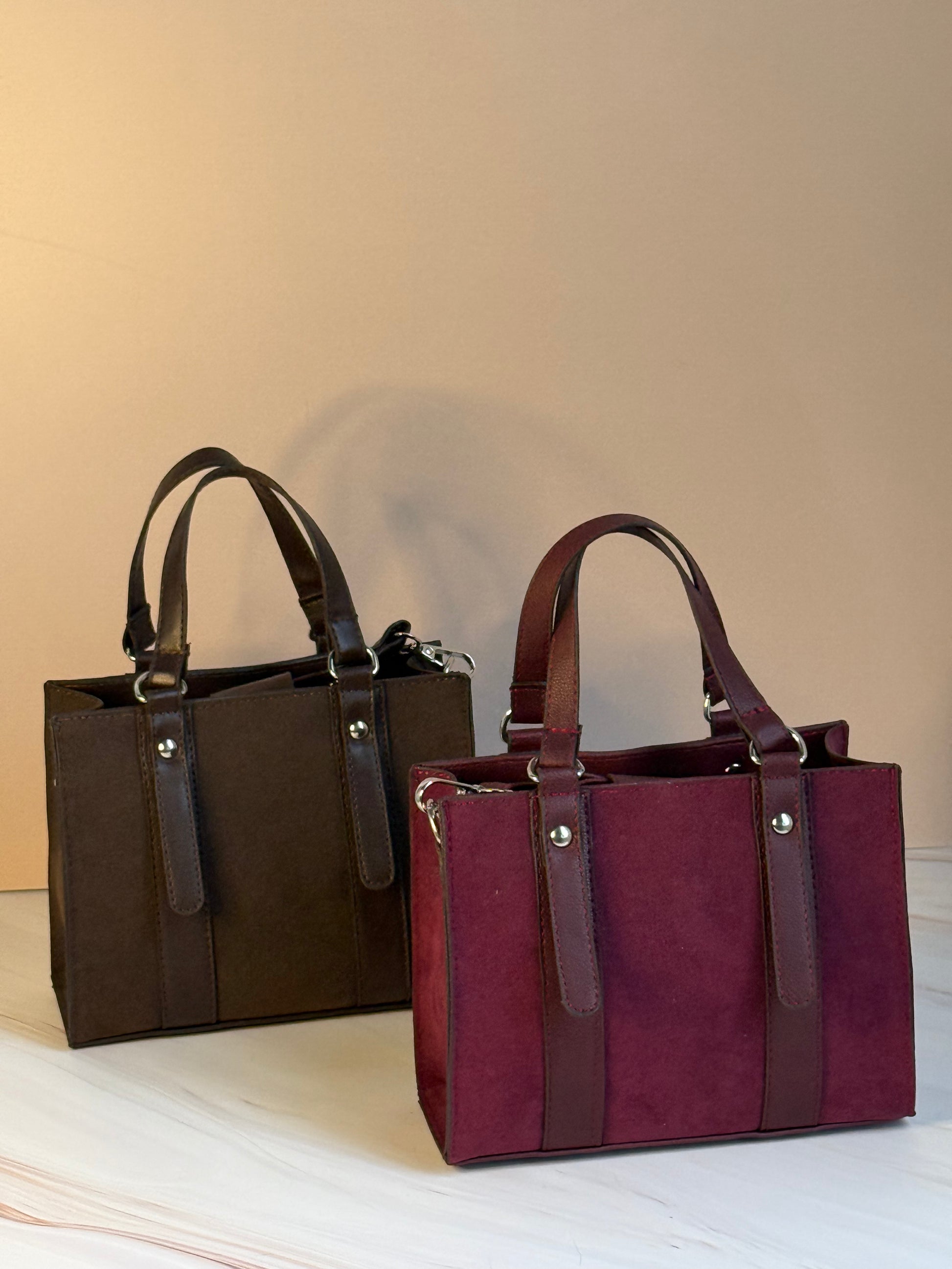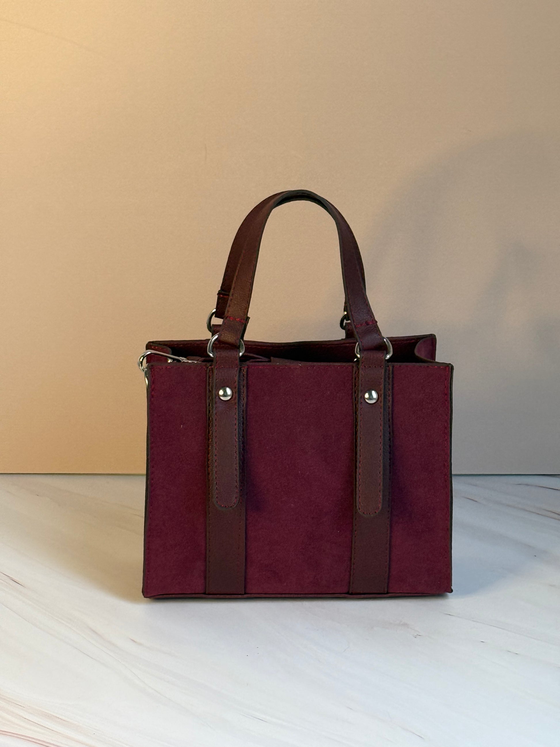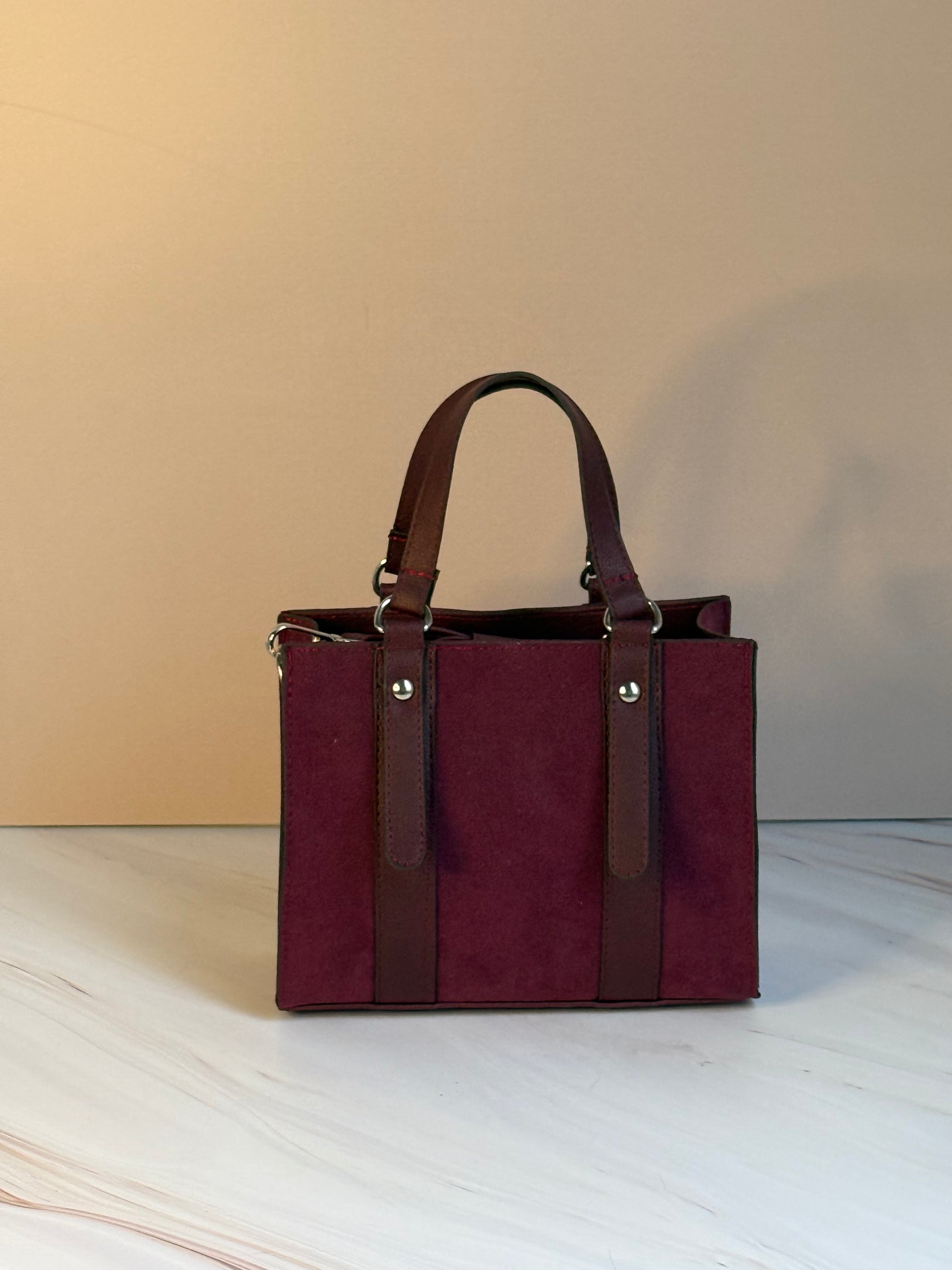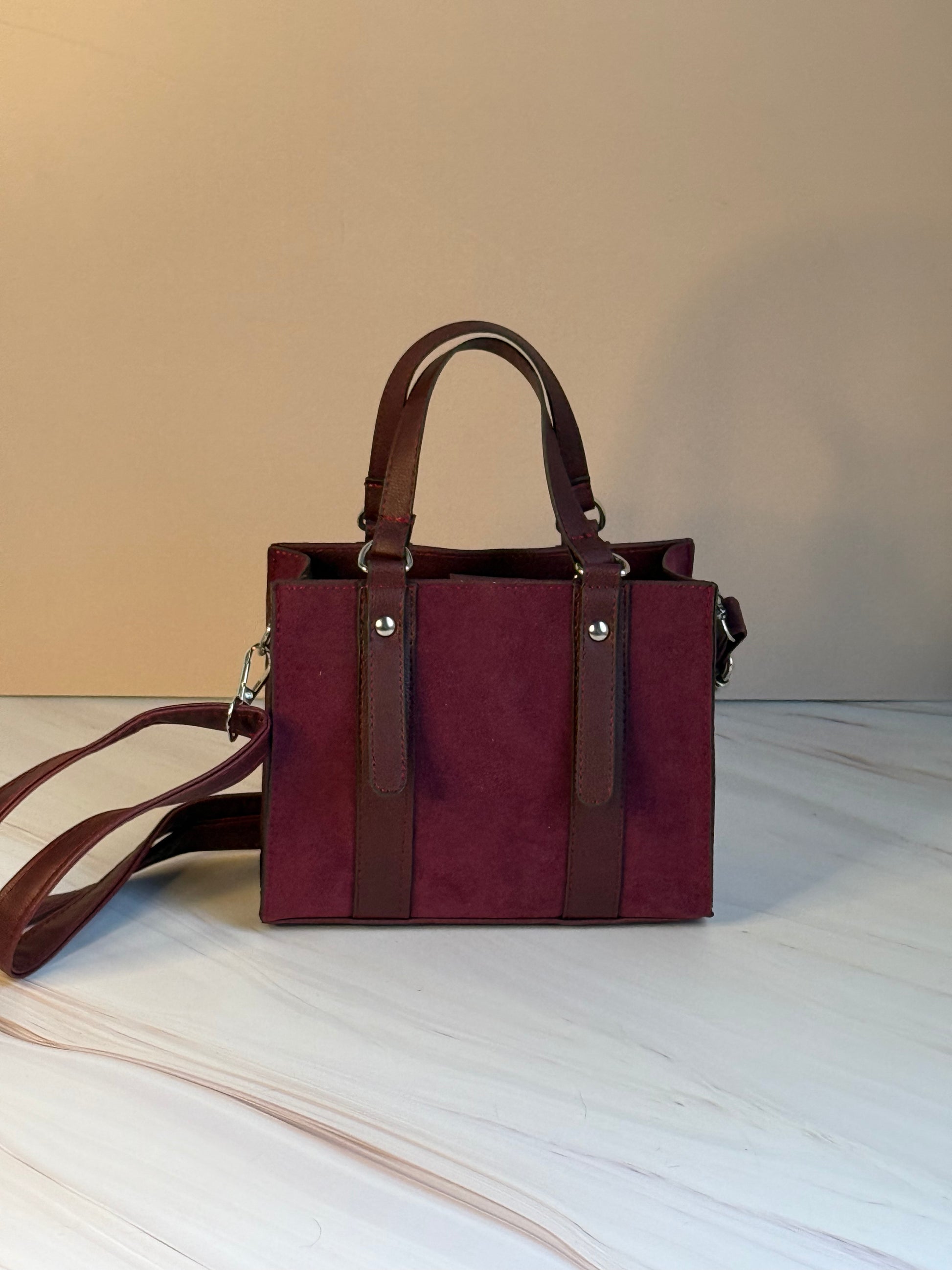 Disfruta de un bolso compacto y funcional, diseñado en piel sintética con textura tipo gamuza que aporta suavidad y estilo.