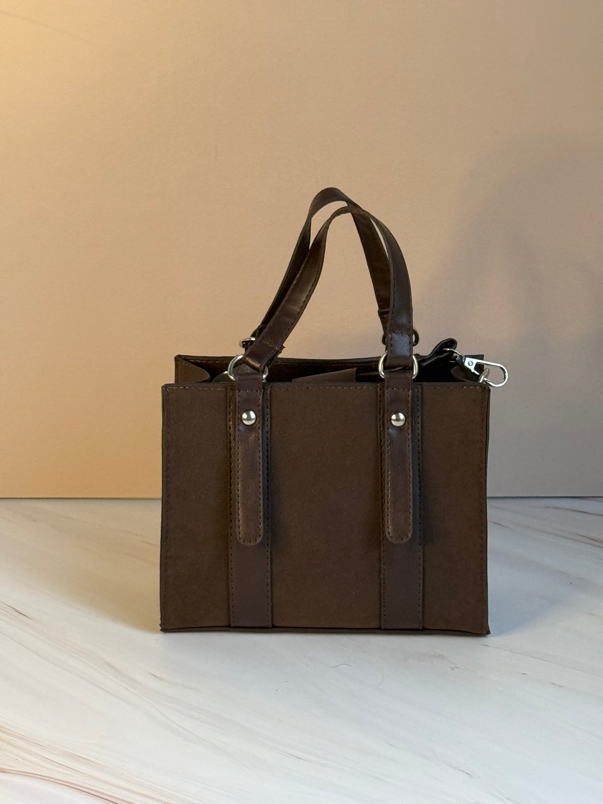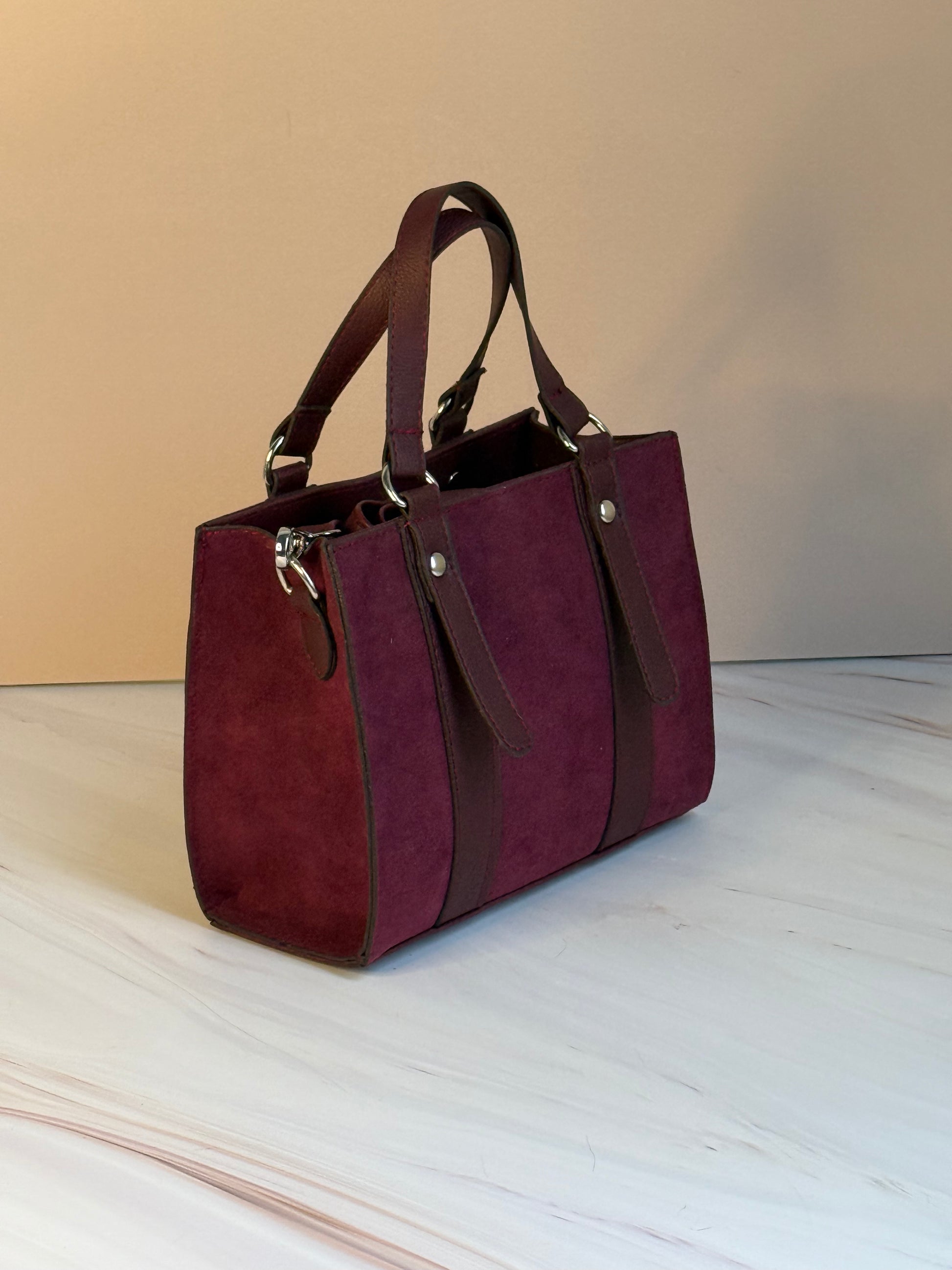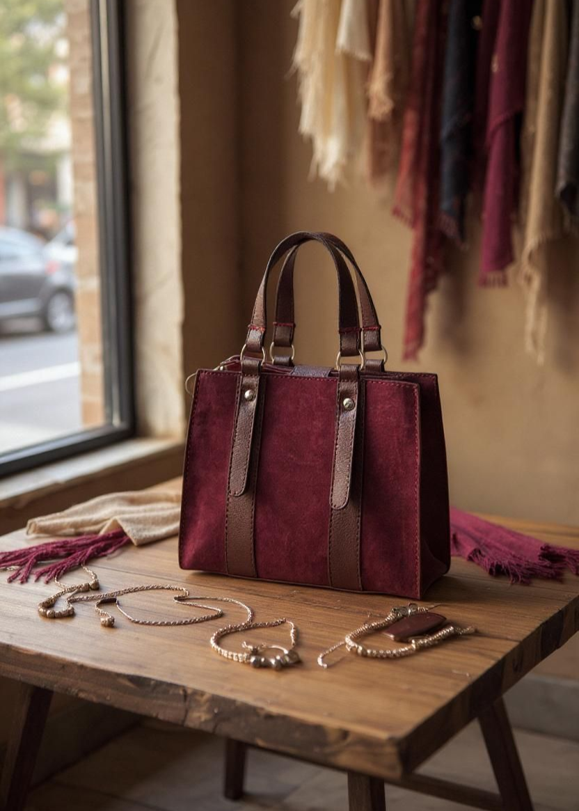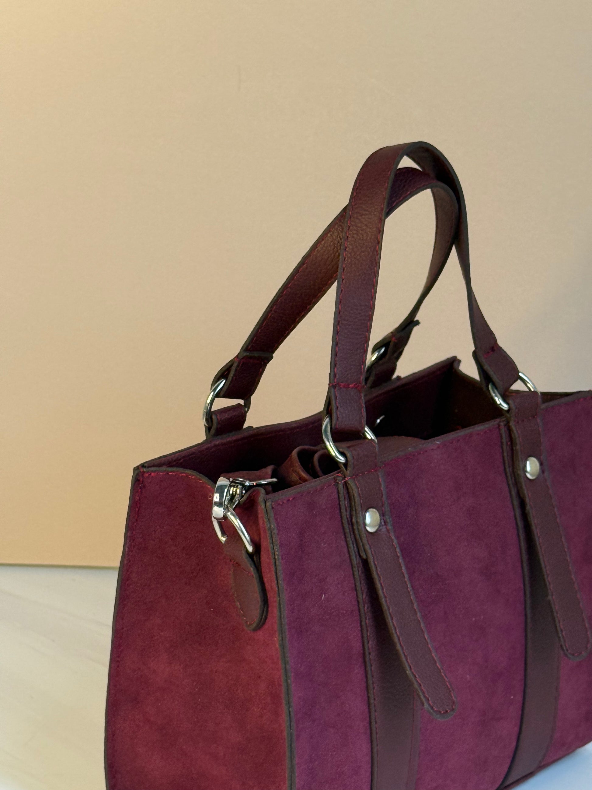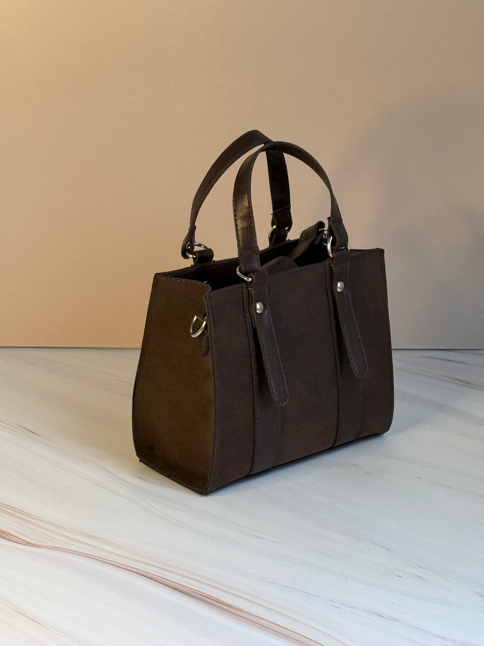 Disfruta de un bolso compacto y funcional, diseñado en piel sintética con textura tipo gamuza que aporta suavidad y estilo.
